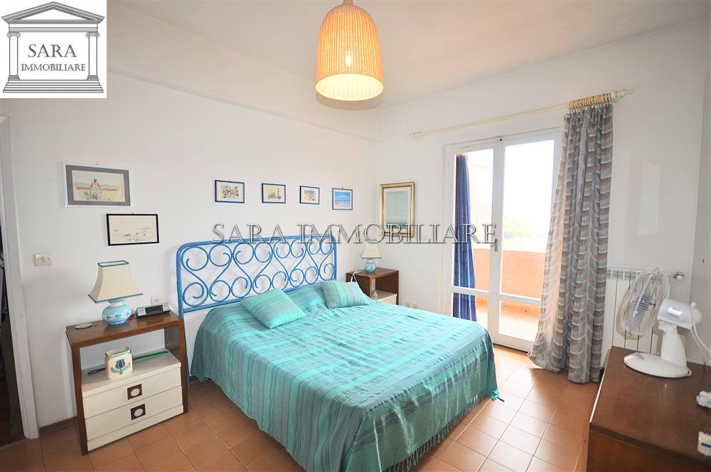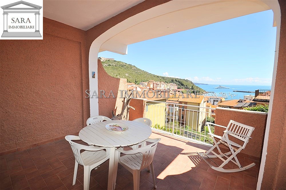 Dal soggiorno e dalla camera padronale si accede al terrazzo di 20 mq diretto sul mare, sul porto, sul Paese Vecchio e sulle Fortezze Spagnole.