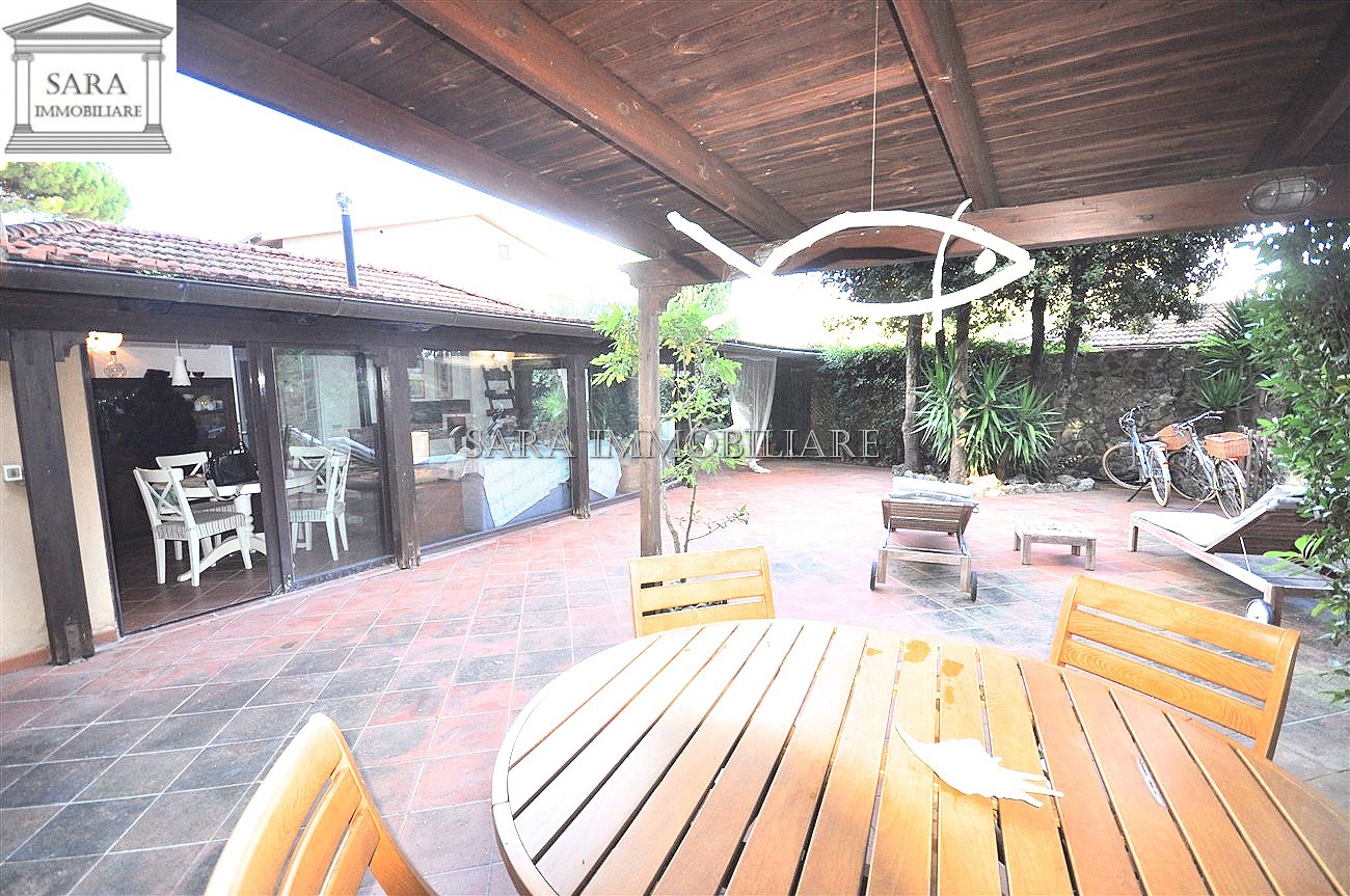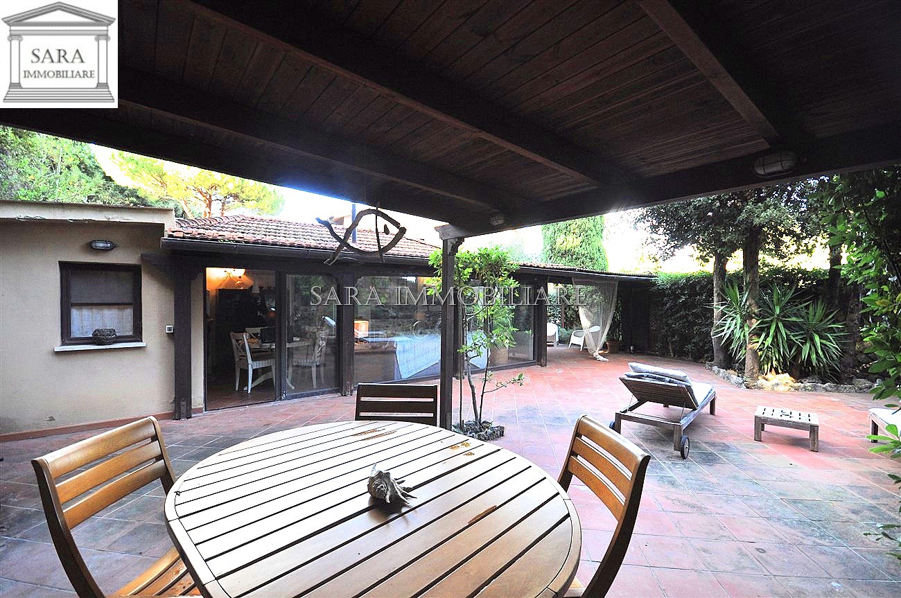 Arricchisce la proprietà l’ampia zona esterna, in parte giardino e in parte pavimentata, suddivisa in zona relax arredata e zona pranzo con barbecue, dove potersi rilassare durante le fresche serate estive in totale privacy. Sul retro del villino una comoda doccia esterna e molto spazio per riporre le bici.